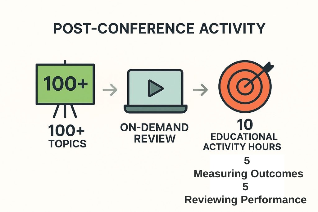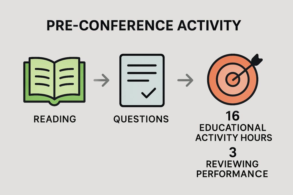 - Educational Activities (16 hours): Guided reading across key clinical chapters to build a foundation for conference learning.